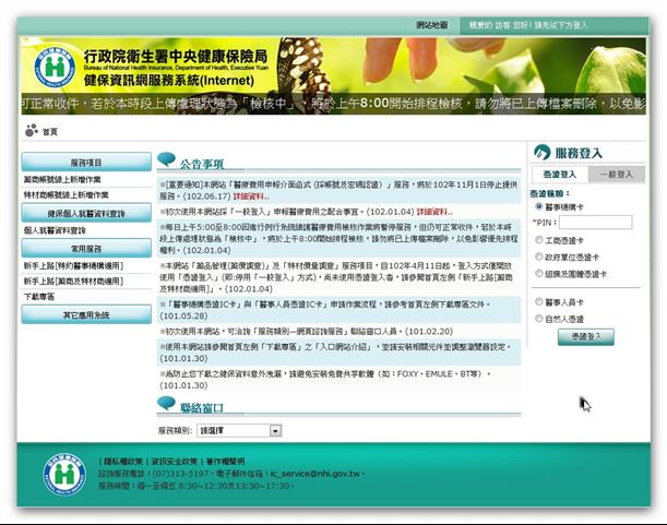 網頁如果無法登入, 請點選  新手上路[特約醫事機構適用] 看說明,還不行 問健保局