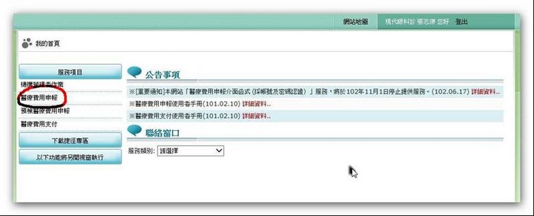8.進入首頁,可能左方項目有些不同(申請服務不同),但OK